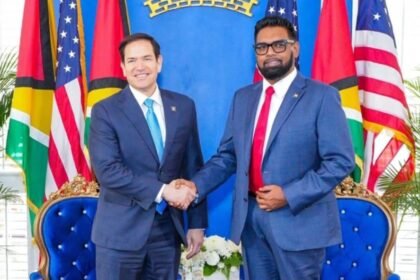 O secretário de Estado norte-americano, Marco Rubio, e o presidente da Guiana,…